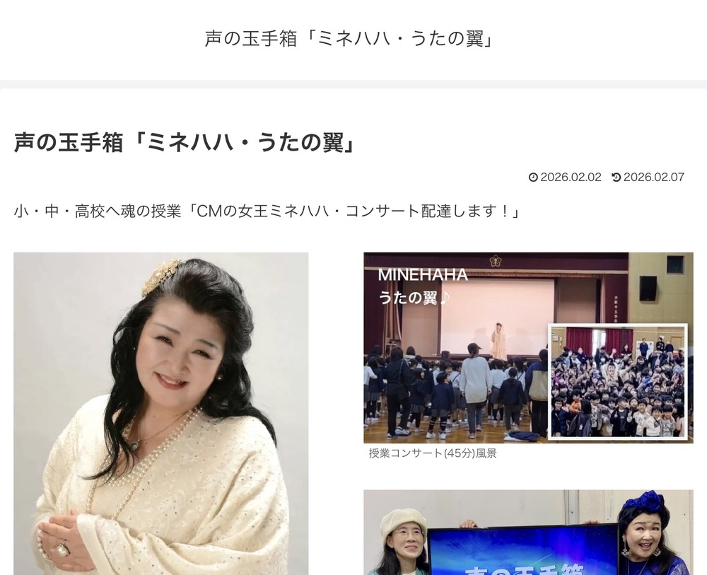 ミネハハ・うたの翼プロジェクト、スタートしました NEWS ミネハハ やまかわそら 三輝みきこ #メンバー募集 soratama rink 2026/03/04 19:00 フォロー かねてより、番組でもお知らせの通り、 うたの翼プロジェクトが本格スタートいたしました。 公式ホームページはこちらです。ぜひ、ご支援お願いいたします。 https://iimono-lab.sub.jp/voice URLをコピーする 報告する
